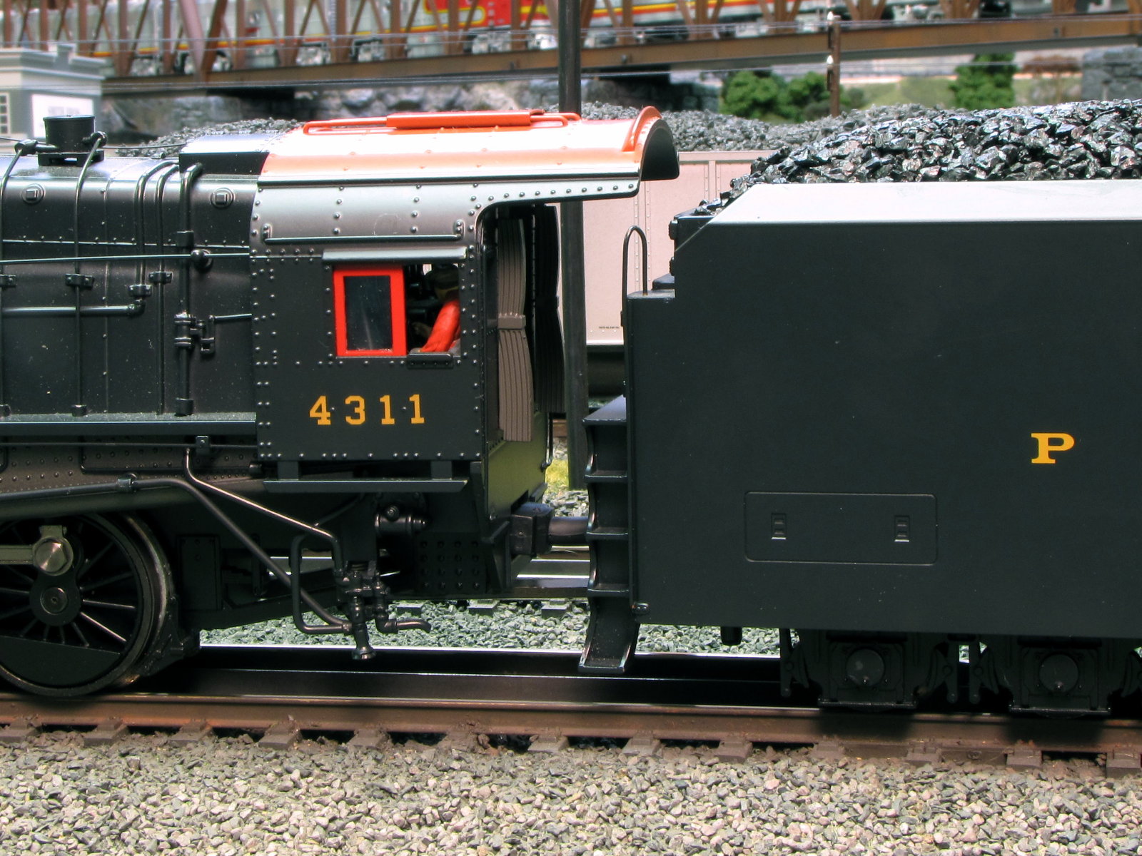 Besides no more un-prototypical curling tether, this straight tether looks like the pipe for feeding coal from the tender to firebox.